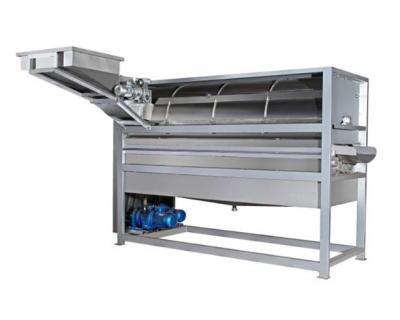 臍橙螺旋磨油機結構特征及工作原理:該設備有螺旋、磨輥、進出料斗、噴淋管、集水槽等組成,工作時物料進入到螺旋中間,通過螺旋向出料口移動,移動的過程中與底部帶刺磨輥相互摩擦,從而達到磨油的效果,同時上方的噴淋管的高壓水將油沖走到集水槽中,進入下道分離工序;