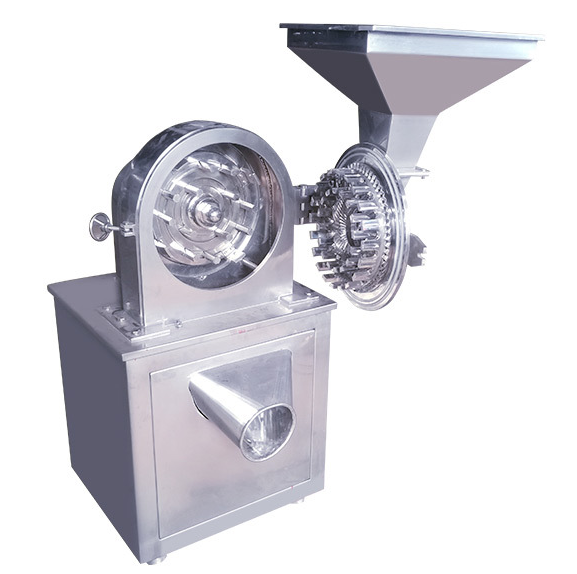工作原理:飛刀繞自身軸線在固定不動(dòng)的底刀間隙內(nèi)旋轉(zhuǎn),從而使果蔬破碎,轉(zhuǎn)子上有四組飛刀底刀為一組,視果蔬種類不同,出料斗有斗式和管式兩種型式。在進(jìn)料斗上部加上緩沖裝置,可得到粒度更細(xì)的物料。